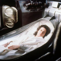 Первый фильм серии «Чужой» об инопланетных монстрах, уничтожающих экипаж космического корабля, вышел в 1979 году. По сюжету буксир «Ностромо» транспортирует к Земле груз. Команда, погруженная в анабиоз, внезапно пробуждается под действием автоматической системы. Выясняется, что с неизвестной планеты исходит сигнал SOS, и астронавты по правилам должны исследовать источник сигнала. На пустом корабле они находят яйцеподобные объекты с зародышами внутри, после чего жизнь астронавтов оказывается под угрозой.