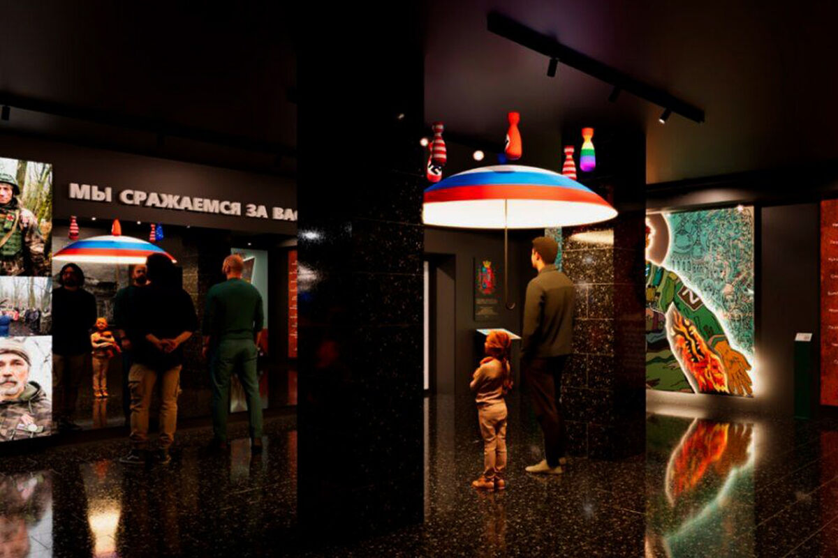 Арт-объект под названием «Зонт мира» выставлен в зале музея, посвященном российской специальной военной операции на Украине. Зонт, раскрашенный в цвета флага России, защищает от бомб, похожих на флаги США, ЕС, Третьего рейха и сообщества ЛГБТ.