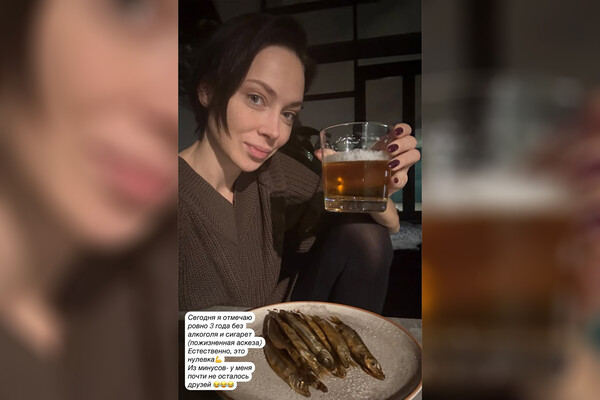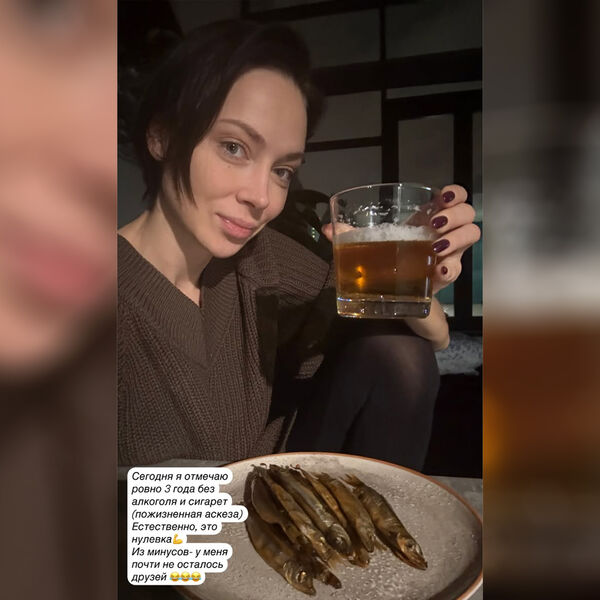 Актриса и певица Настасья Самбурская поделилась в Instagram (владелец компания Meta признана в России экстремистской и запрещена) фотографией, на которой предстала со стаканом безалкогольного пива и сушеной рыбой.