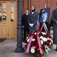 Президент России Владимир Путин прислал к церемонии прощания венок. Он украшен лентой в цветах российского триколора.