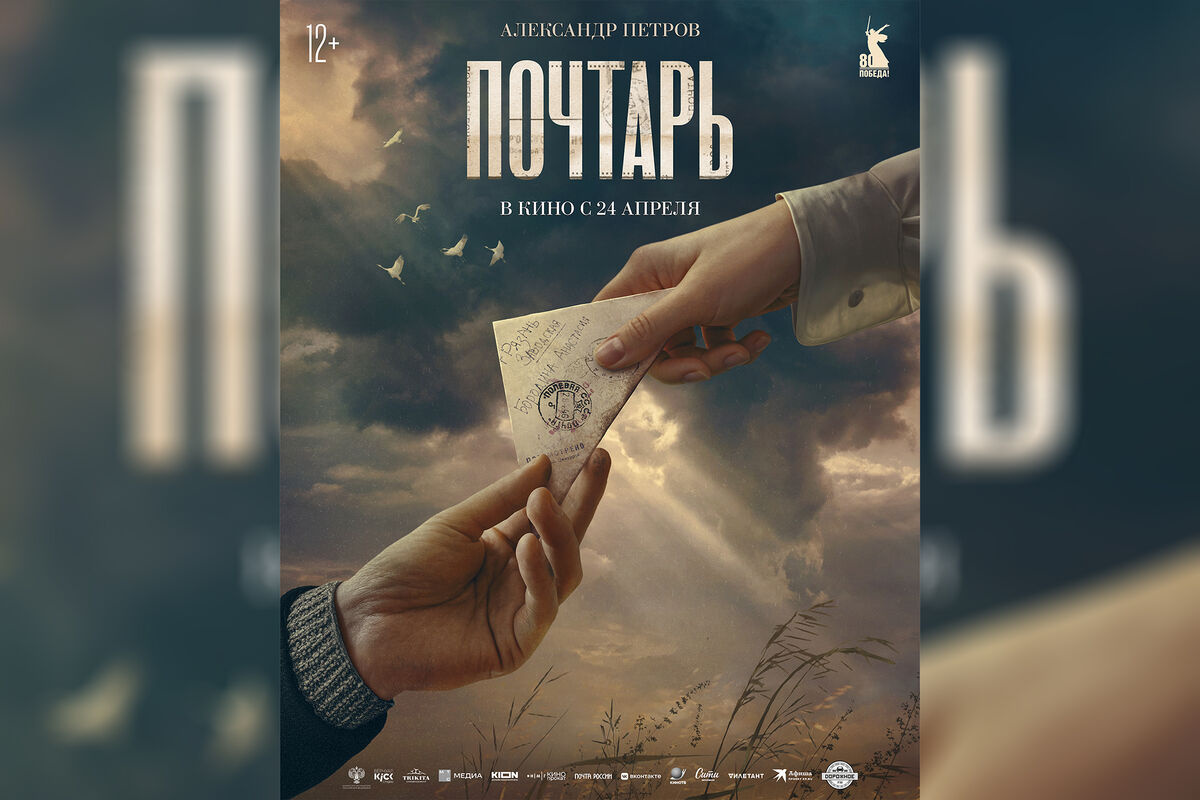На постере фильма, снятого KION и компанией «ТРИКИТА ЭНТЕРТЭЙНМЕНТ» герой Петрова — чудаковатый почтальон — передает письмо с фронта.