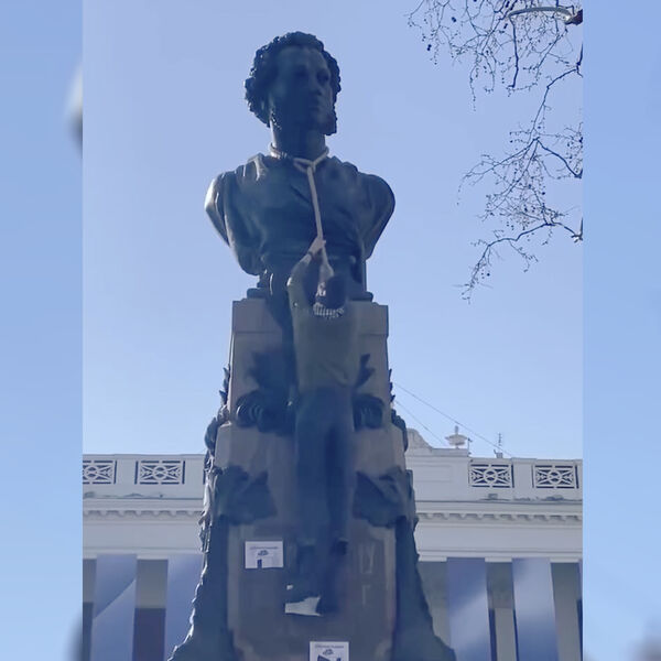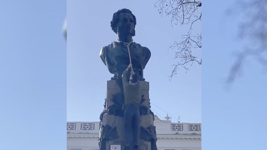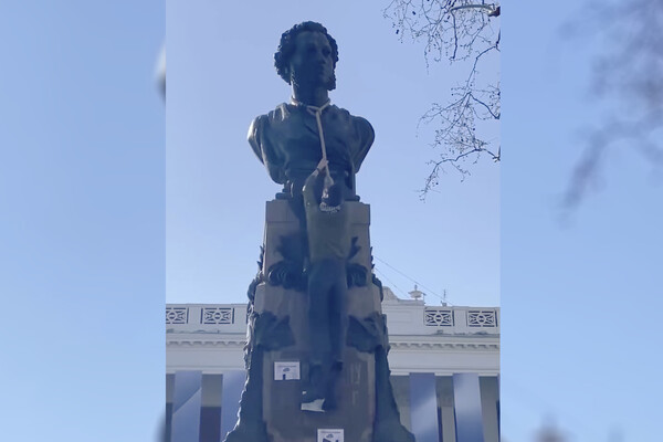 На памятник Пушкину в Одессе набросили петлю и повесили объявление «Ищу бульдозер». Об этом сообщает Telegram-канал «Политика страны».