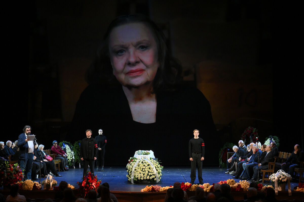На церемонии прощания с актрисой, проходящей в МХТ имени Чехова, телеграмму главы государства зачитал ректор Школы-студии МХАТ Игорь Золотовицкий.