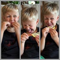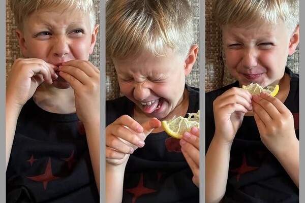 Виторган опубликовал снимки сына, где тот ест лимон. На них мальчик морщится и плюется.