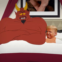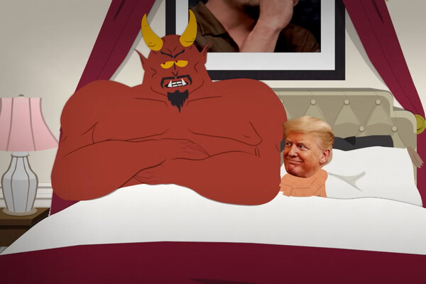 В премьерном эпизоде, «Нагорная проповедь» президент США общается с постоянным участником сериала Сатаной (Международное движение сатанизма признано в РФ экстремистским, его деятельность запрещена). В эпизоде говорится о судебном иске Трампа против Paramount, отмене «Позднего шоу со Стивеном Кольбером», воук-культуре и многом другом. В отличие от других персонажей, Трамп изображен в виде настоящей фотографии президента США на анимированном теле.