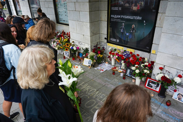 Гражданская панихида по режиссеру должна начаться в 10:00 по московскому времени. К этому времени у входа в театр уже появился стихийный мемориал с живыми цветами, фотографиями и свечами.