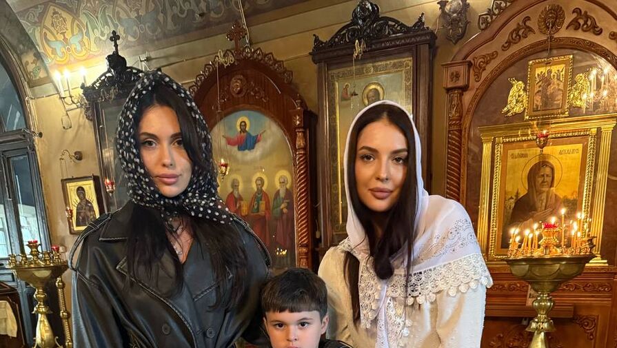 В этом же храме проходило отпевание музыканта. На одном из снимков Карицкая позирует с, предположительно, крестной матерью шестилетнего Ивана.