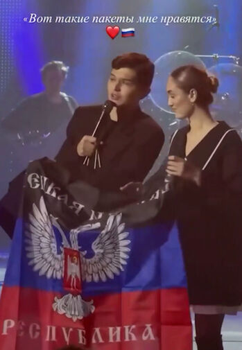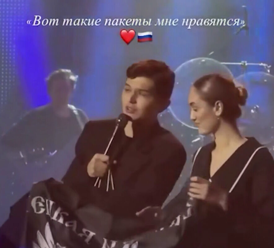 Akmal' принял от поклонницы подарок в пакете в цветах российского флага.