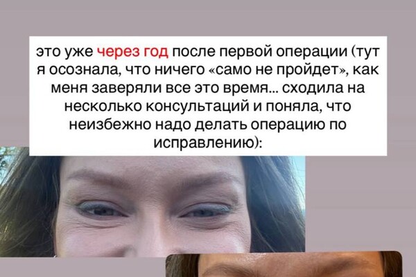 Рассказывая об операциях, она сравнила неудачную подтяжку с браком с певцом Владом Соколовским — по словам артистки, она «прожила травму, но не закрылась навсегда» и доверилась другому хирургу.