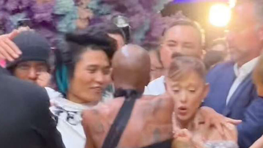 На премьере фильма «Злая: Сказка о ведьме Запада», которая состоялась 13 ноября 2025 года в Сингапуре, Гранде шла по желтой дорожке вместе с коллегами — Мишель Йео, Синтией Эриво и Джеффом Голдблюмом, как вдруг к ней подбежал мужчина в белой рубашке и шортах. Он обхватил артистку за плечи в намерении прижать к себе, а она пыталась отстраниться.
