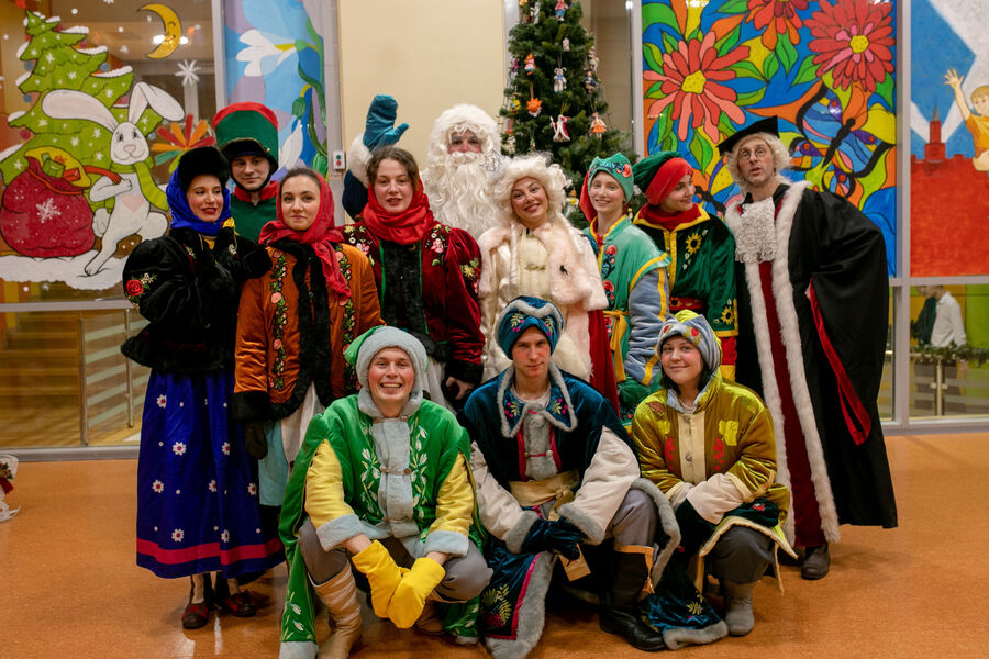 Дед Мороз и Снегурочка пригласили детей посмотреть представление от актеров театра Сергея Котюха. Юных зрителей ждал иммерсивный спектакль по мотивам сказки «Двенадцать месяцев». Вместе с главными героями они прошли все испытания и добыли корзину подснежников, без которых Новый год не мог наступить.