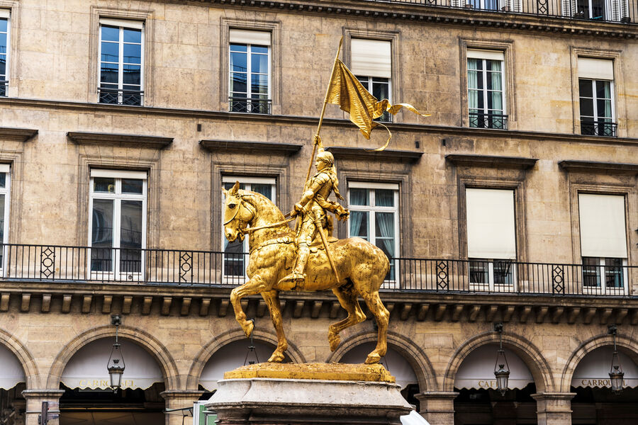 Памятник воительнице во французской столице возвели в XIX веке. Автором скульптуры стал мастер Поль Дюбуа. Жанну д'Арк он изобразил верхом на коне, в доспехах, в правой руке у нее меч.