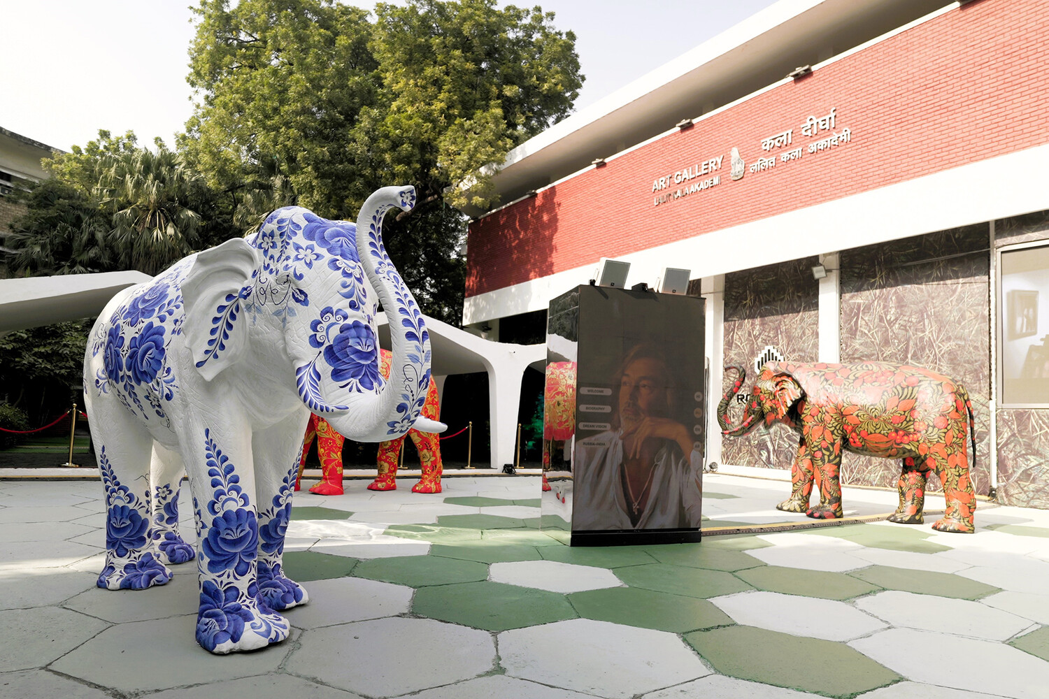 В Нью-Дели все работы были представлены в восьми залах Академии искусств. Также на выставке оборудовали более 400 метров LED-экранов с эффектом дополненной реальности и использованием ИИ.
