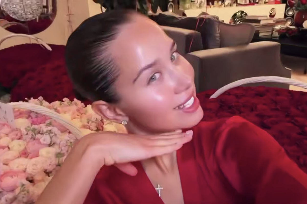 Издание обращает внимание на недавние публикации блогерши, на которых она позирует напротив больших букетов с розами под запись: «Он будет принимать меня такой, какая я есть». Когда произносится слово «он», то Киба указывает на цветы.