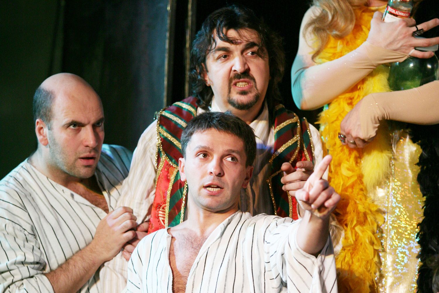 Речь идет о спектакле «Квартета И» «Пассажиры отложенных рейсов». Постановка рассказывает о встрече четырех незнакомцев в зимнем аэропорту. В ней выступили Александр Демидов, Камиль Ларин, Леонид Барац и Ростислав Хаит.