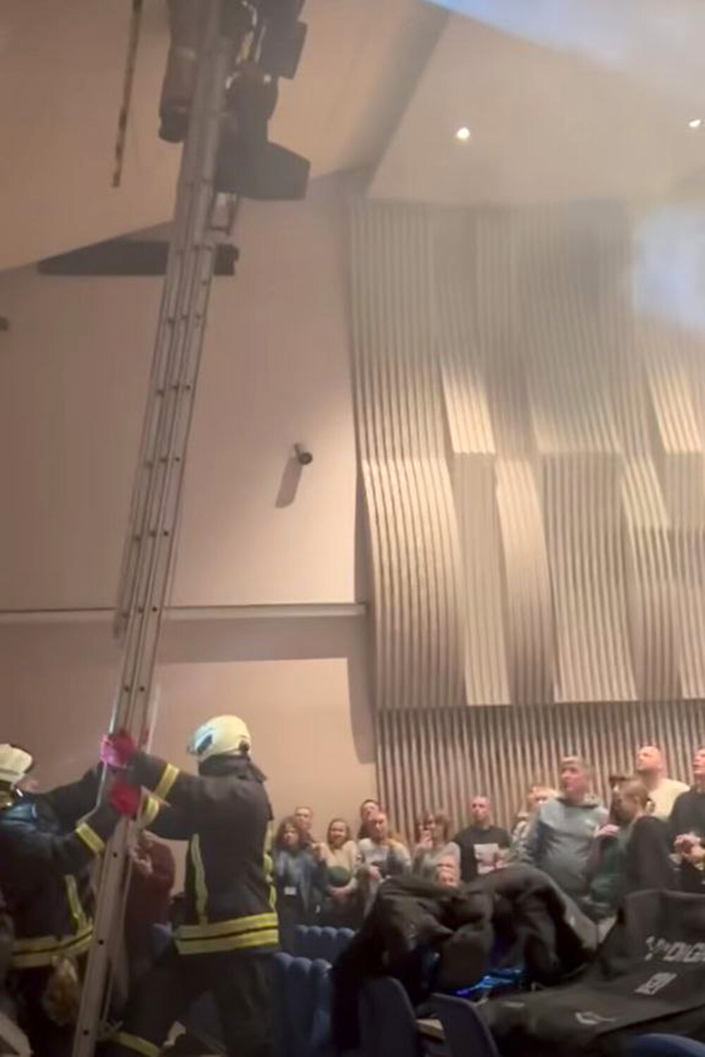Концерт проходил 15 февраля в Нидском центре культуры. Однако мероприятие пришлось остановить, когда на зрителей с потолка упала часть конструкции.