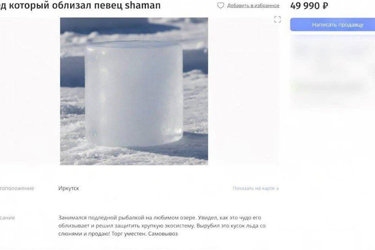 На онлайн-площадке продавец предлагает приобрести кусок льда, утверждая, что на нем сохранилась слюна популярного артиста Shaman (настоящее имя — Ярослав Дронов). Об этом сообщает Telegram-канал «Что там, Москва».