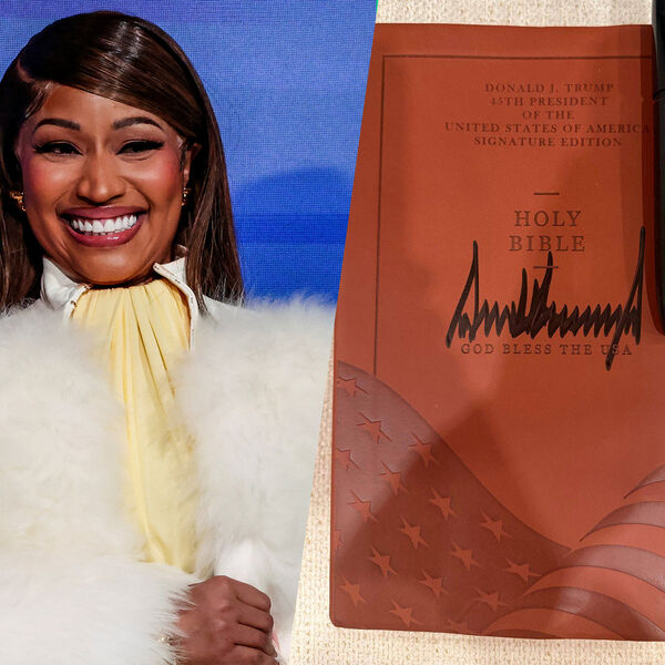 Минаж опубликовала фото лимитированной Библии с автографом Трампа. На издании есть подпись «Боже, благослови Америку», а также изображен флаг США. Артистка назвала эту книгу одним из самых значимых подарков в своей жизни.