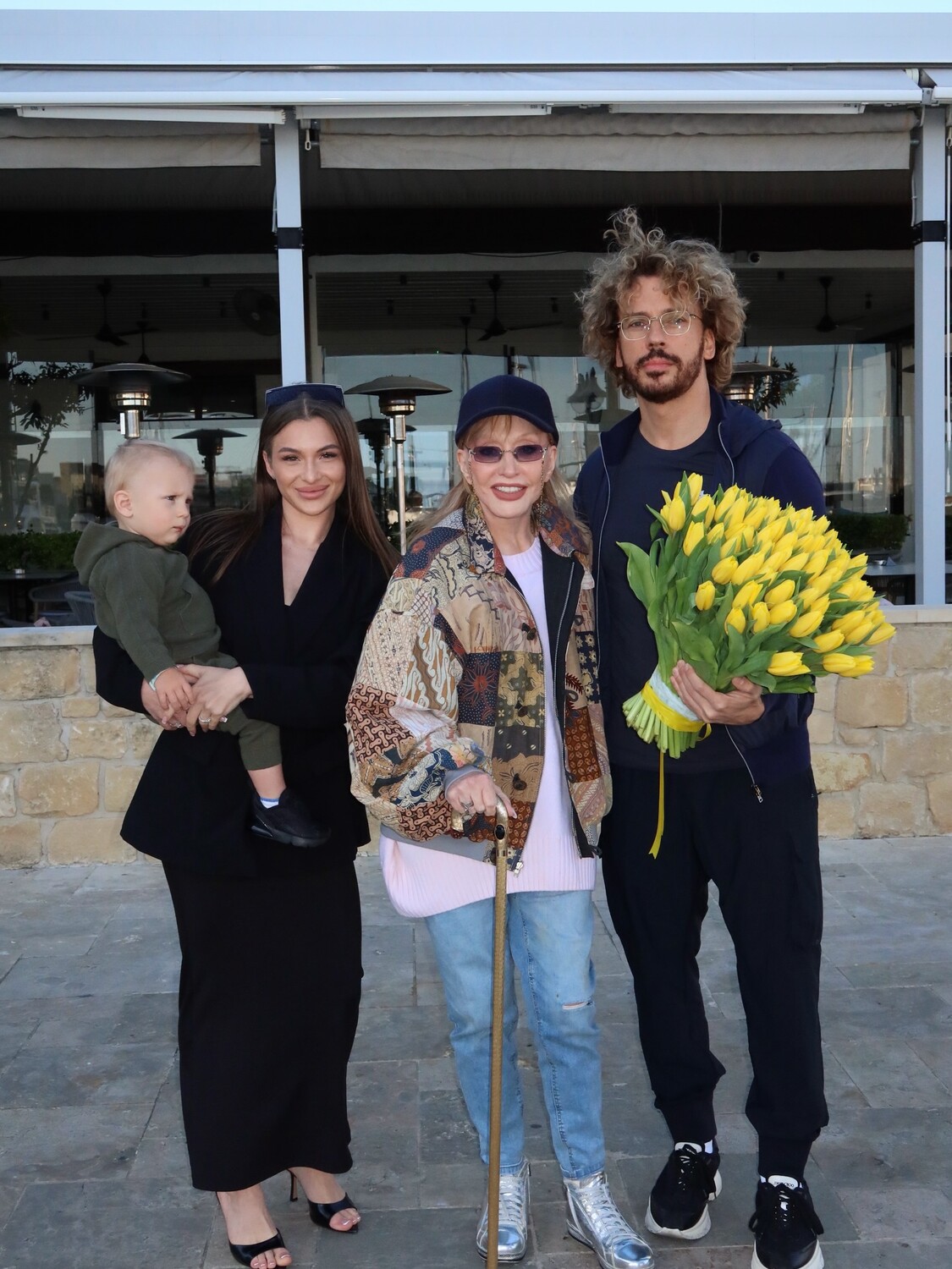 На снимке запечатлена Пугачева вместе со своим мужем, комиком Максимом Галкиным (признан в РФ иностранным агентом). При этом правой рукой она опирается на трость.
