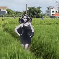 В Индонезии фермер установил пугало в виде Бейонсе для защиты урожая от птиц