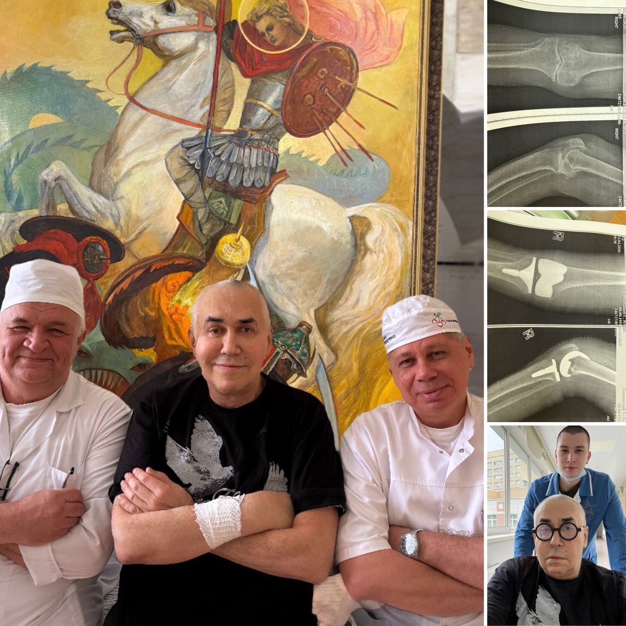«Уже не ползаю по сцене и странно не хожу. Робот из госпиталя им. Вишневского с «глазами» выполнил протезирование коленного сустава на отлично! Офигительные врачи-хирурги», — поделился артист.