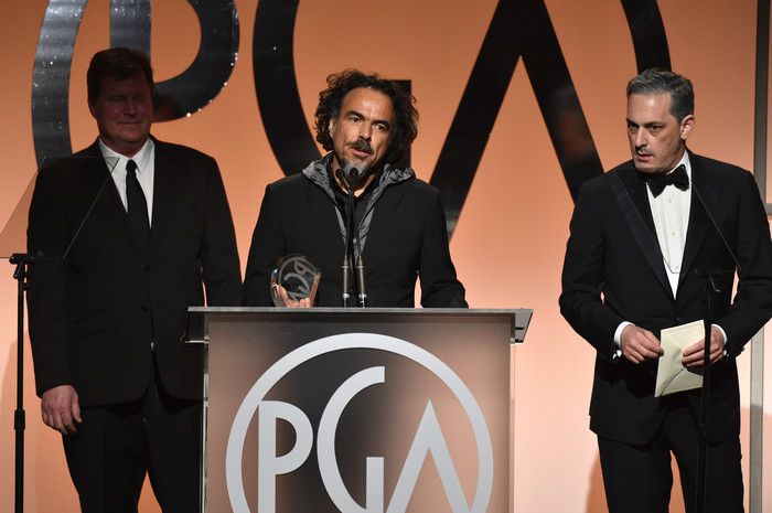 Лучшим фильмом 26-й премии Гильдии продюсеров США стал «Бёрдмэн» Алехандро Гонсалеса Иньярриту. В числе номинантов в главной категории были и другие претенденты на «Оскар», например «Снайпер» Клинта Иствуда, «Отрочество» Ричарда Линклейтера, «Отель «Гранд Будапешт» Уэса Андерсона. Лучшей анимационной картиной продюсеры признали «Лего. Фильм», который претендовал на «Золотой глобус» (и проиграл «Как приручить дракона 2») и не вошел в число оскаровских номинантов. Гости церемонии, среди которых были Эдриен Броуди, Кира Найтли, Риз Уизерспун, аплодировали также победе сериалов «Во все тяжкие», «Оранжевый — хит сезона» и «Фарго».