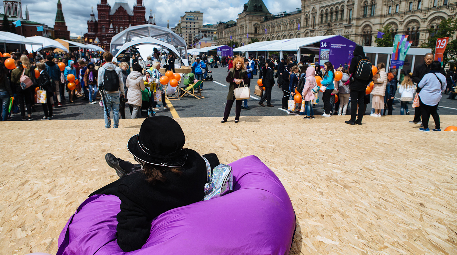 Главная сцена фестиваля расположена у храма Василия Блаженного, павильоны с книгами разместились по всему периметру площади. Книжная ярмарка в самом сердце столицы — в фоторепортаже «Газеты.Ru».