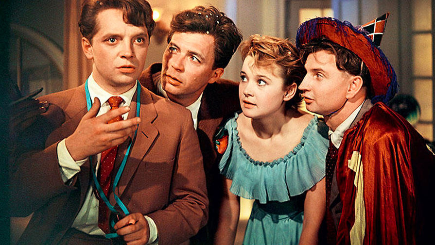 На фото, слева направо: Юрий Белов, Георгий Куликов, Людмила Гурченко, Валентин Брылеев в фильме «Карнавальная ночь» (1956). Именно эта жизнерадостная новогодняя комедия Эльдара Рязанова сделала 20-летнюю студентку ВГИКа настоящей звездой. Игорь Ильинский, сыгравший в «Карнавальной ночи» Серафима Ивановича Огурцова, стал своего рода пророком. «Чую… После этой картины ты будешь очень популярной», — сказал он Людмиле и посоветовал готовиться к грядущей славе. И не ошибся! Кадр из фильма «Карнавальная ночь» (1956). Сегодня с трудом верится в то, что официальные пробы на роль Леночки актриса провалила. Тогда юная харьковчанка решилась на хитрый ход: привлечь внимание самого директора «Мосфильма» Ивана Пырьева. Благо, такой случай подвернулся. Пырьев шел по коридору, когда ему на глаза попалась девушка с лихой, пружинящей походкой. Участь дебютантки была решена: Пырьев распорядился о новых пробах для дебютантки. Рязанов остался доволен результатом, и советский зритель увидел теперь уже всем известную Лену Крылову. Кадр из фильма «Карнавальная ночь» (1956). Сам Рязанов, хоть и утвердил Гурченко на роль Леночки Крыловой, все-таки считал ее слишком «манерной». Да и Пырьев, изначально обративший внимание на ее задорную походку, позже утверждал, что актриса «чересчур кривляется». Оба смягчились лишь после того, как к «Карнавальной ночи» пришел колоссальный успех. Критиковали и песню «Пять минут», написанную поэтом-песенником Владимиром Лившицем и композитором Анатолием Лепиным. Впервые услышав главный номер фильма, музыканты оркестра Рознера нашли ее старомодной и даже сравнили с немецкими шлягерами 30-х годов. Позже, когда песня стала настоящим хитом, забылось и это. Но тогда от ее бешеной популярности начала уже страдать Гурченко – ей приходилось петь «Пять минут» по несколько раз в день, на самых разных концертных площадках столицы. Кадр из фильма «Карнавальная ночь» (1956). Интересный факт: декор, костюмы, реквизит «Карнавальной ночи» и даже звук — почти прямая отсылка к Голливуду. Так, героиня Гурченко шесть раз меняла наряды, и каждое платье выглядело подозрительно не по-советски. Это диоровский New Look в чистом виде. Шотландская клетка (на фото) — тоже хрестоматийный рождественский мотив в голливудских фильмах. И, наконец, верх буржуазности: белая меховая муфта Леночки Крыловой. После выхода картины о таком аксессуаре мечтала едва ли не каждая зрительница. В фильме «Женитьба Бальзаминова» (1964) 29-летняя Гурченко сыграла второстепенного персонажа. Но от этого ее появление на экране не стало менее ярким. Молодой звезде досталась роль Устиньки, реплика которой «Ну, как у вас было? Я ужасть как люблю откровения о любви от своих подруг!» пошла в народ. «Женитьба Бальзаминова»: слева, направо – Людмила Гурченко, Жанна Прохоренко, Георгий Вицин, Людмила Шагалова, Николай Крючков. Устинька в исполнении Гурченко – «перезревшая девица», приживалка в доме Ничкиных — выгодно оттеняет свою цветущую подругу Капочку. Актриса радовалась любой роли и вдохновенно импровизировала на съемочной площадке. «Деревянные» движения Устиньки; ее деловитость, парадоксально сочетающаяся с суетливостью и сентиментальностью — изобретение Людмилы Марковны. Олег Басилашвили и Людмила Гурченко в фильме «Вокзал для двоих» (1982). Эльдар Рязанов специально пригласил н