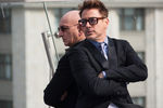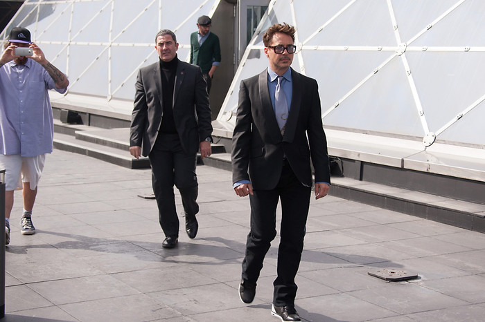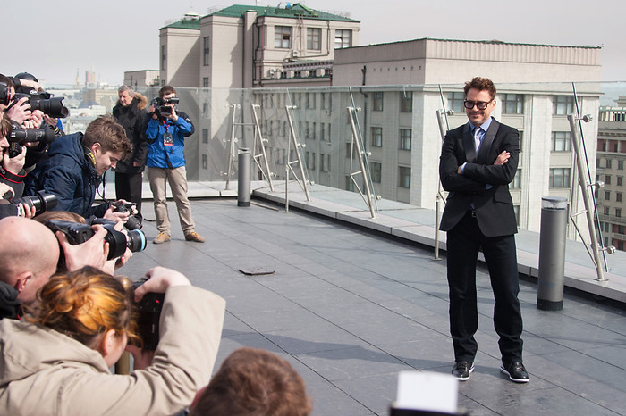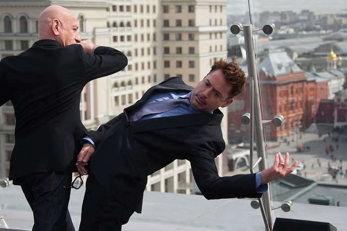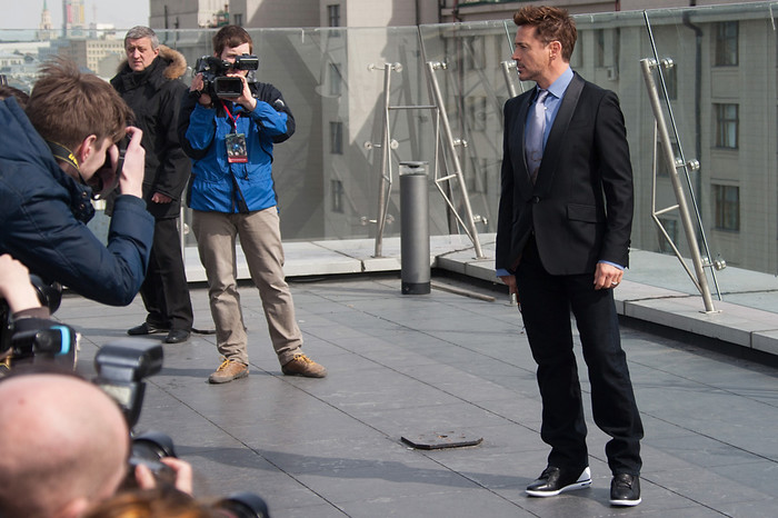 Актеры Роберт Дауни-младший и Бен Кингсли представили в Москве фильм «Железный человек-3» — третью часть экранизации комиксов о похождении богача и изобретателя,который в минуту опасности надевает «железные доспехи» и защищает обывателей от разнообразных злодеев. В российский прокат картина выйдет 2 мая это года.