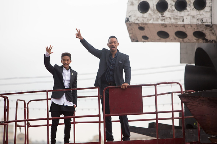 Американский актер Уилл Смит и его сын Джейден представили в Москве фильм «После нашей эры». Фантастическая драма М. Найта Шьямалана расскажет о событиях далекого будущего: на обезлюдевшую Землю совершает аварийную посадку космический корабль с героями, которых сыграли отец и сын Смиты.