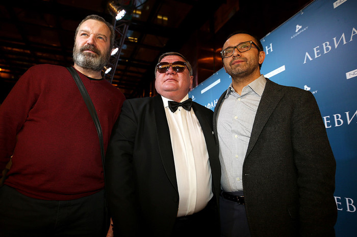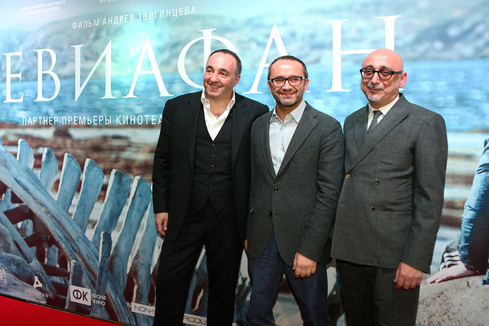 Сегодня в столичном кинотеатре «Москва» прошел день «Левиафана» — сначала нашумевший и претендующий на «Оскар» фильм Андрея Звягинцева показали кинокритикам, затем режиссер, продюсеры Александр Роднянский (признан в РФ иностранным агентом) и Сергей Мелькумов и актер Владимир Вдовиченков, сыгравший в фильме одну из главных ролей, провели пресс-конференцию. А уже поздним вечером состоялась и официальная российская премьера картины, на которой съемочная группа представила «Левиафана» зрителям. В широкий прокат в России фильм выйдет 5 февраля; по предваритеьным данным, показывать его будут более 450 кинотеатров по всей стране.