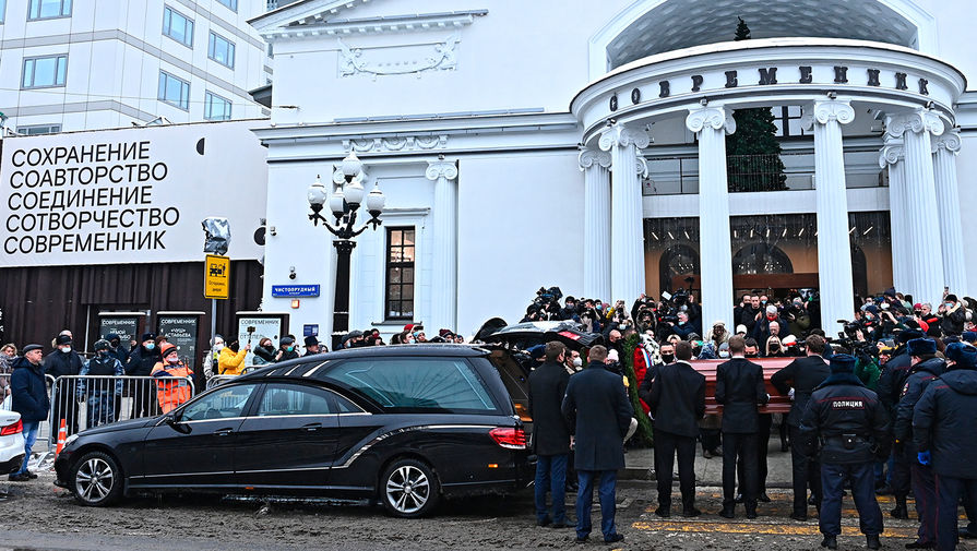 Вынос гроба с телом народного артиста РСФСР Валентина Гафта после церемонии прощания в театре «Современник», 15 декабря 2020 года Во время церемонии прощания с народным артистом РСФСР Валентином Гафтом в театре «Современник», 15 декабря 2020 года Во время церемонии прощания с народным артистом РСФСР Валентином Гафтом в театре «Современник», 15 декабря 2020 года Актриса Лия Ахеджакова во время церемонии прощания с народным артистом РСФСР Валентином Гафтом в театре «Современник», 15 декабря 2020 года Вдова Валентина Гафта Ольга Остроумова во время церемонии прощания с народным артистом РСФСР в театре «Современник», 15 декабря 2020 года Актер Сергей Гармаш и его супруга актриса Инна Тимофеева во время церемонии прощания с народным артистом РСФСР Валентином Гафтом в театре «Современник», 15 декабря 2020 года Во время церемонии прощания с народным артистом РСФСР Валентином Гафтом в театре «Современник», 15 декабря 2020 года Певец Александр Розенбаум во время церемонии прощания с народным артистом РСФСР Валентином Гафтом в театре «Современник», 15 декабря 2020 года Во время церемонии прощания с народным артистом РСФСР Валентином Гафтом в театре «Современник», 15 декабря 2020 года Певец Григорий Лепс во время церемонии прощания с народным артистом РСФСР Валентином Гафтом в театре «Современник», 15 декабря 2020 года Вынос гроба с телом актера Валентина Гафта после церемонии прощания в театре «Современник», 15 декабря 2020 года Художественный руководитель Театра Наций, актер Евгений Миронов во время церемонии прощания с народным артистом РСФСР Валентином Гафтом в театре «Современник», 15 декабря 2020 года Художественный руководитель театра Олега Табакова Владимир Машков во время церемонии прощания с народным артистом РСФСР Валентином Гафтом в театре «Современник», 15 декабря 2020 года Актер Авангард Леонтьев во время церемонии прощания с народным артистом РСФСР Валентином Гафтом в театре «Современник», 15 декабря 2020 года Актриса Юлия Рутберг перед началом церемонии прощания с народным артистом РСФСР Валентином Гафтом в театре «Современник», 15 декабря 2020 года Вынос гроба с телом народного артиста РСФСР Валентина Гафта после церемонии прощания в театре «Современник», 15 декабря 2020 года