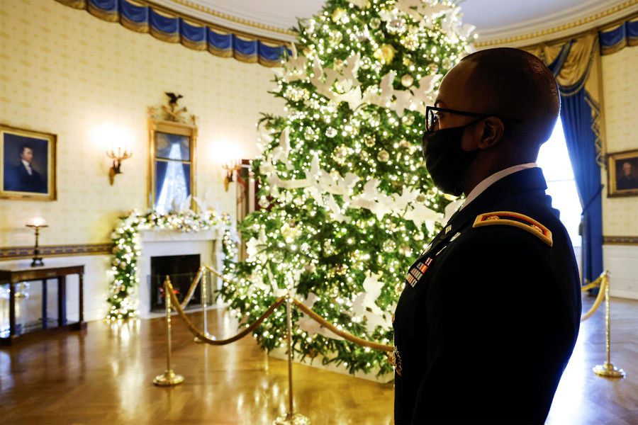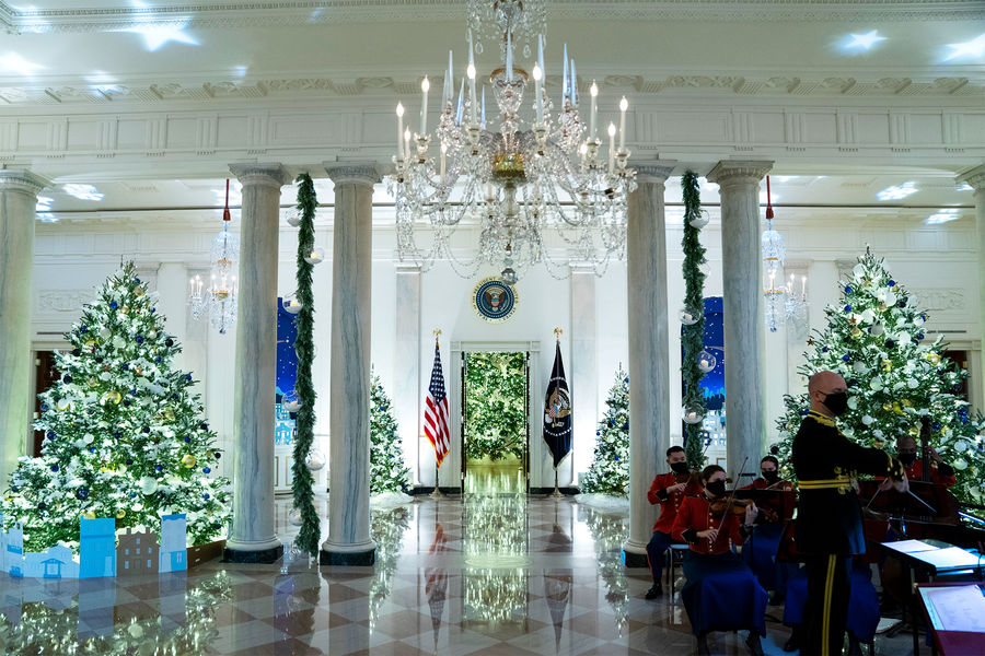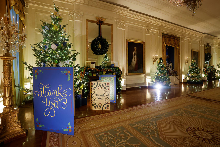 В США украшением резиденции президента к Рождеству традиционно занимается первая леди. В этом году свой вариант декора впервые представила Джил Байден. Она выбрала темой дизайна фразу «Подарки от всего сердца».