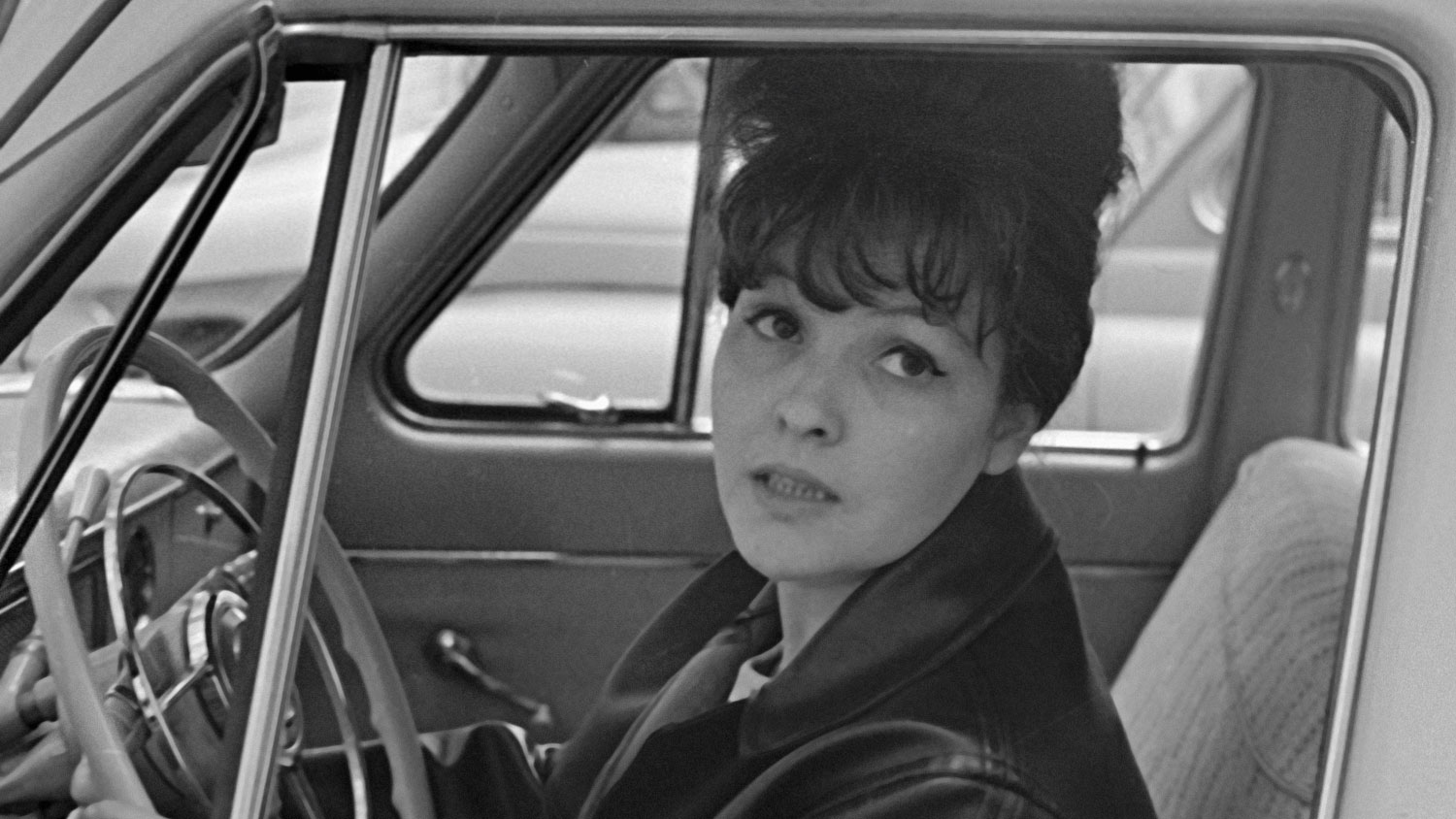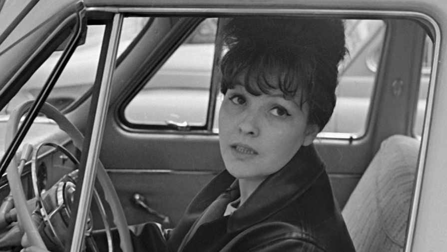 Белла Ахмадулина за рулем своего автомобиля, 1965 год