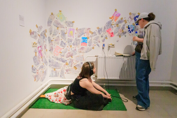 «Я работаю сразу в двух сферах искусства — художественной и музыкальной. И центральной темой в моей деятельности является их симбиоз — именно это я и демонстрирую в работе «Лаборатория конвертирования графического изображения в звуковую волну». Здесь, на рабочем столе лаборатории, при помощи маркеров и карандашей зритель может создавать различные графические материалы: рисунки, узоры, надписи, изображения, абстракцию, линии, точки. Я не ограничиваю зрителя и предоставляю ему возможность пофантазировать, как изобразить то, что он хочет услышать.