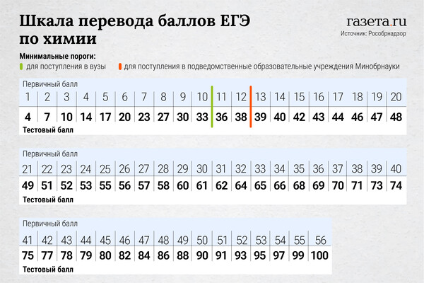 Максимальное количество первичных баллов по каждому предмету различается, так как на экзаменах по русскому языку и, например, по химии, может быть разное количество заданий. Кроме того, есть задания повышенного уровня сложности, где верный ответ может дать выпускнику два, три и больше первичных баллов. Также количество и уровень сложности заданий могут из года в год варьироваться даже в рамках одного учебного предмета.