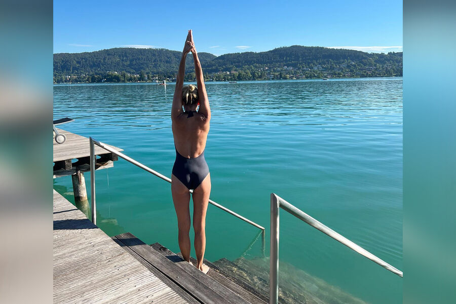 «Проснулась, улыбнулась...небо, воздух, вода, муж снимает», — подписала артистка кадр, снятый в Италии.