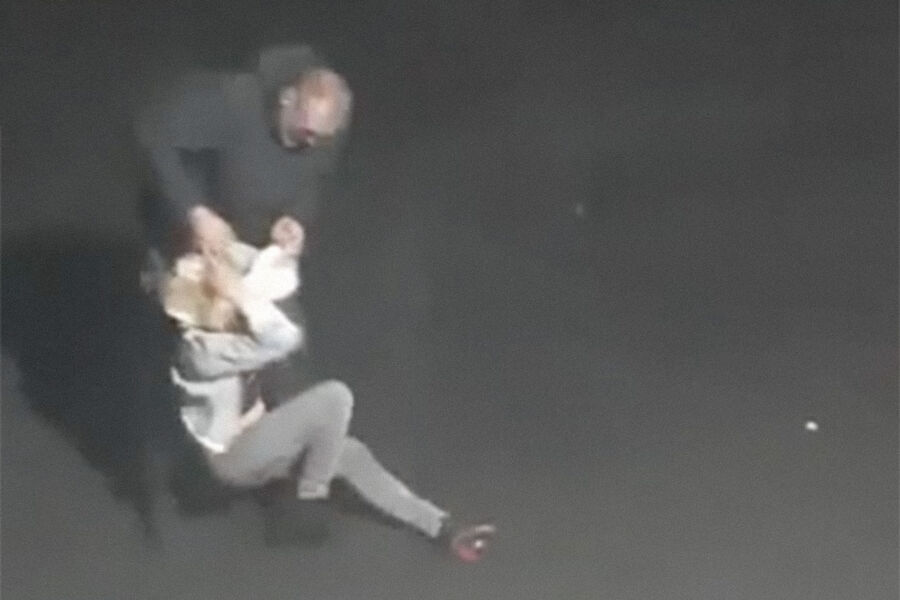 Момент расправы попал на видео, запись опубликовали в сети. На кадрах видеозаписи видно, что сначала женщина пытается убежать от агрессивного возлюбленного, затем падает на землю. После этого мужчина бьет девушку руками, пинает и швыряет из стороны в сторону.