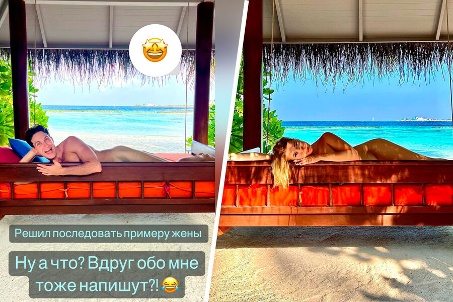Муж фигуристки Екатерины Бобровой повторил ее обнаженное фото, снятое на Мальдивах. Андрей Депутат также позировал, лежа на качелях, и опубликовал кадр в соцсетях.