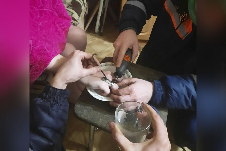 В экстренные службы обратилась мать девочки, она сообщила что дочь решила примерить кольцо, которые было ей маловато, снять украшение с пальца самостоятельно девочка не смогла. Семья пыталась избавиться от кольца народными средствами, но и они не помогли, тогда на помощь школьнице пришли специалисты.