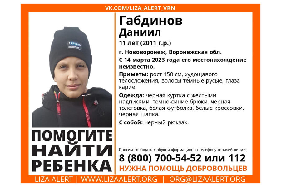 В Воронежской области ведутся поиски 11-летнего школьника, который пропал после уроков и не вернулся домой. Об этом сообщается «ВКонтакте» в группе «Поисковый отряд «ЛизаАлерт» Воронежской области».