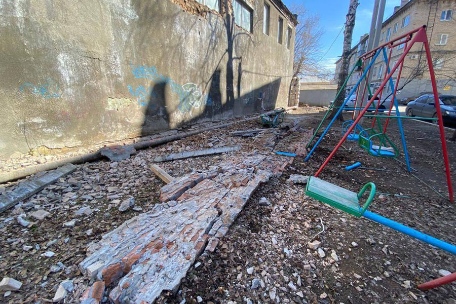 В Оренбурге часть фасада здания депо обрушилась на детскую площадку, пострадал ребенок