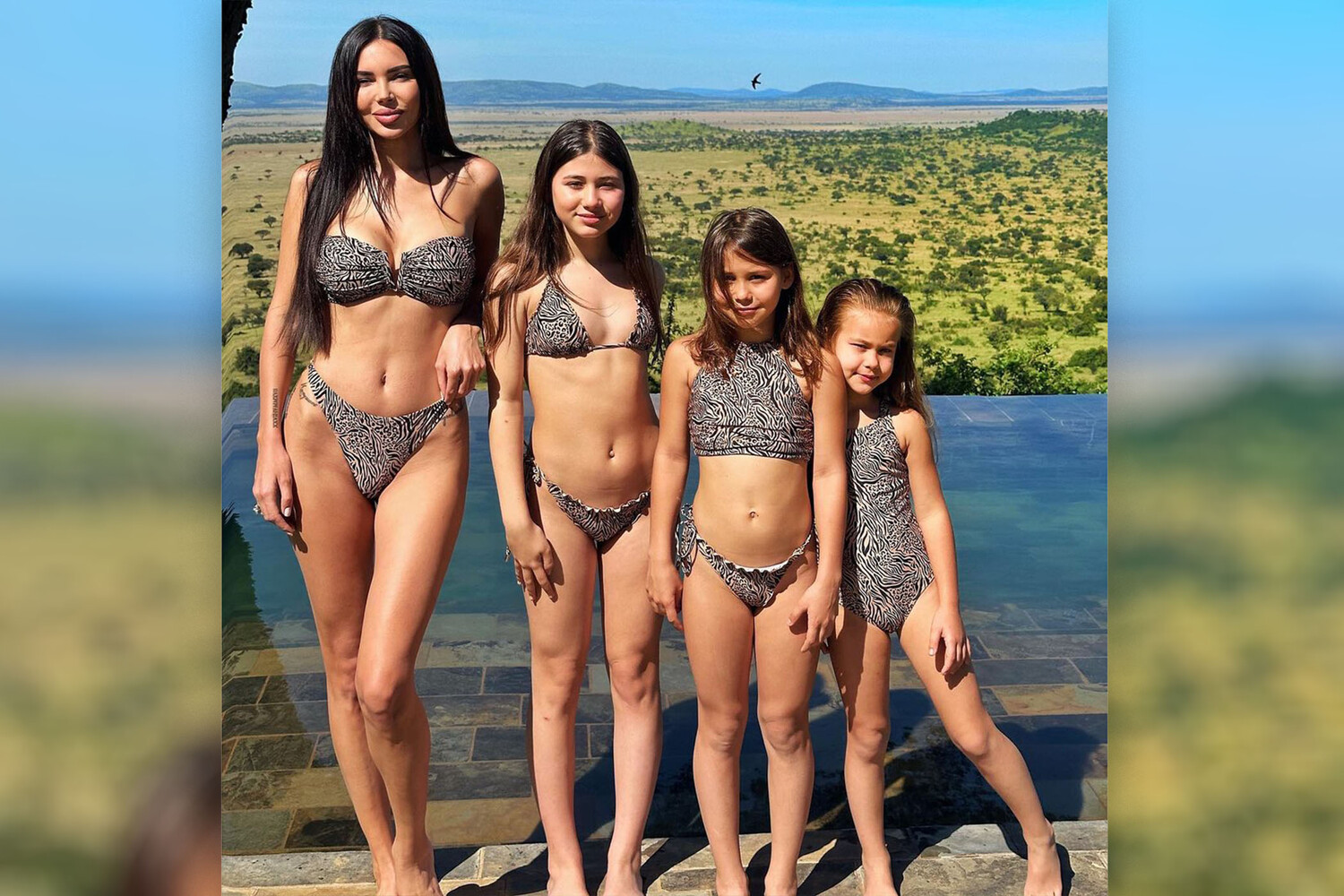 Блогер Оксана Самойлова снялась с тремя дочерьми в купальниках с анималистичным принтом и опубликовала фото в соцсетях. Они позировали возле видового бассейна знаменитого отеля в Африке, в котором также любят отдыхать экс-президент США Барак Обама и голливудский актер Уилл Смит.