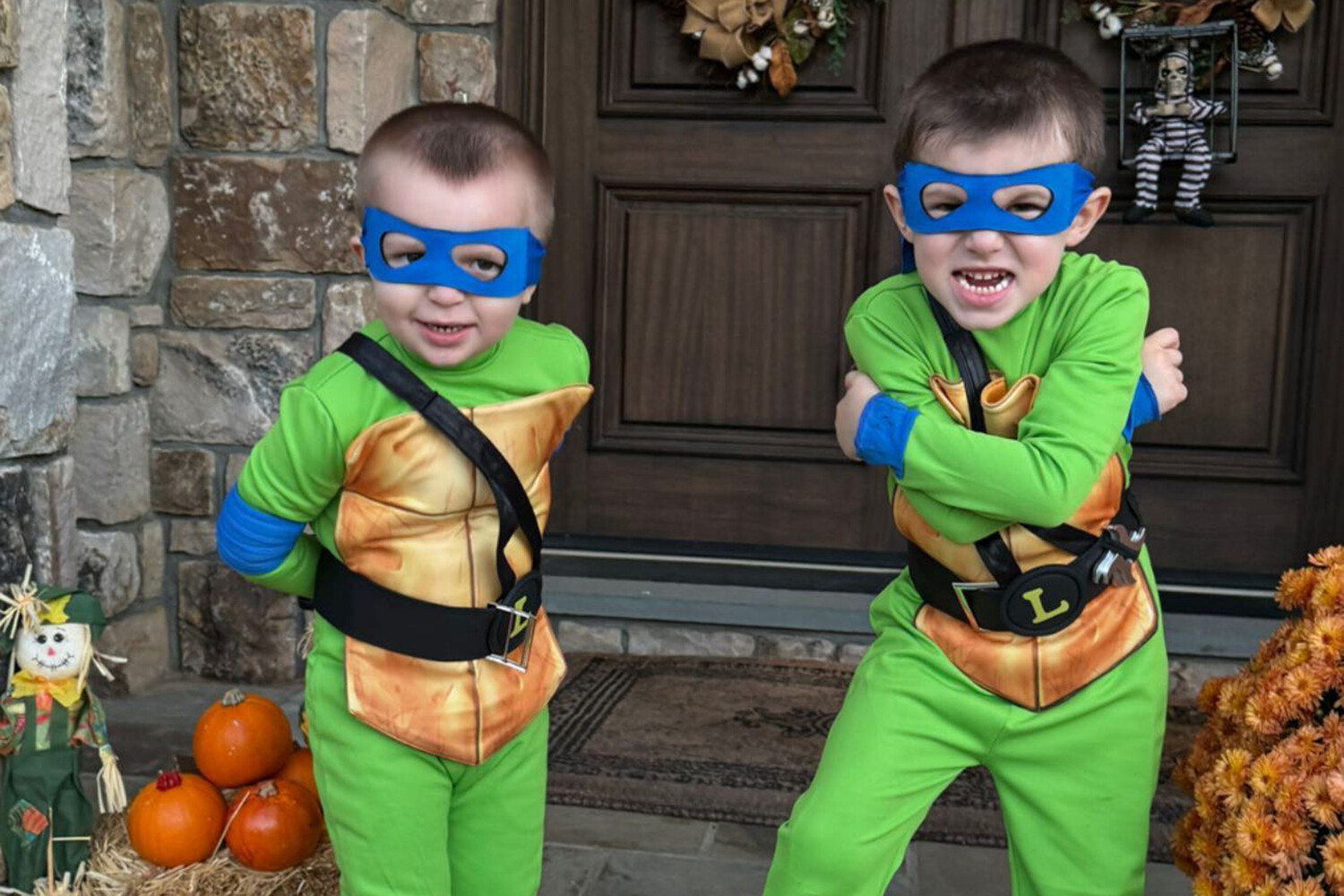 Пятилетний Сергей и трехлетний Илья выбрали одинаковые образы для праздника — они «перевоплотились» в одного из главных героев комиксов про Черепашек-ниндзя Леонардо.
