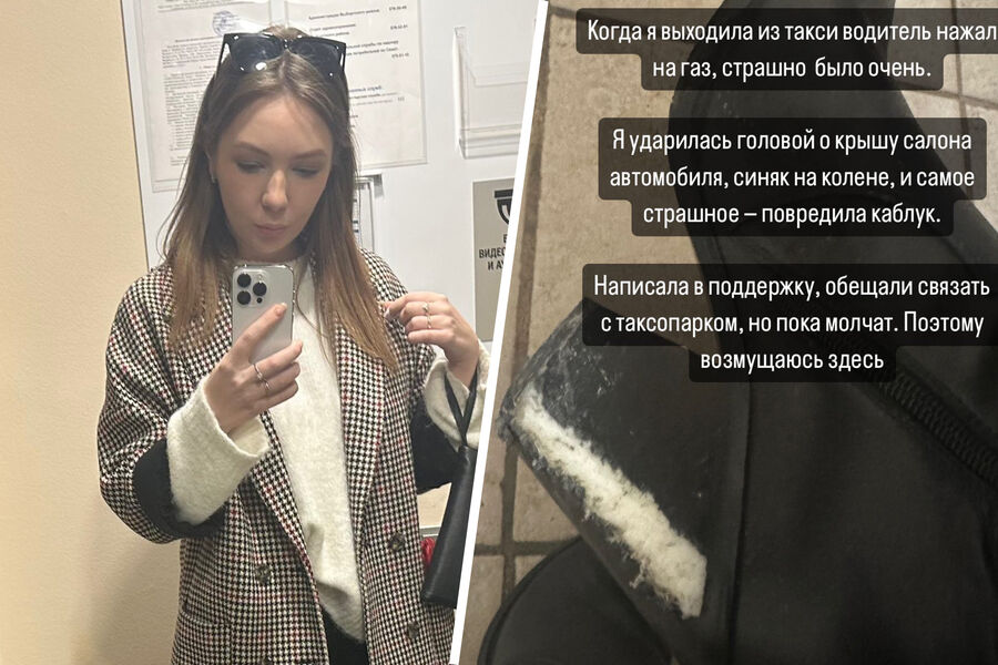 «Случилась пренеприятная история. Когда выходила из такси, водитель нажал на газ, страшно было очень. Я ударилась головой о крышу салона, синяк на колене и самое страшное — повредила каблук. Написала в поддержку, обещали связать с таксопарком, но пока молчат...Поэтому возмущаюсь здесь», — рассказала дизайнер.