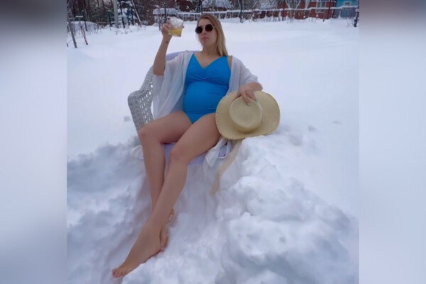 Беременная российская фигуристка снялась в купальнике на снегу