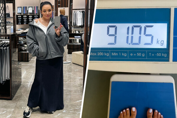 «Это мой вес через неделю после родов. Я очень много набрала за время беременности...почти 30 кг. Мы с мужем жили три месяца в Благовещенске, и там было минус 40. Я не могла выйти на улицу, не то что гулять. И я ходила от ресторана до машины и до кровати. Вот отсюда такой набор веса. Я не двигалась и много ела. Потом после родов пришлось все это экстренно скидывать», — поделилась артистка.
