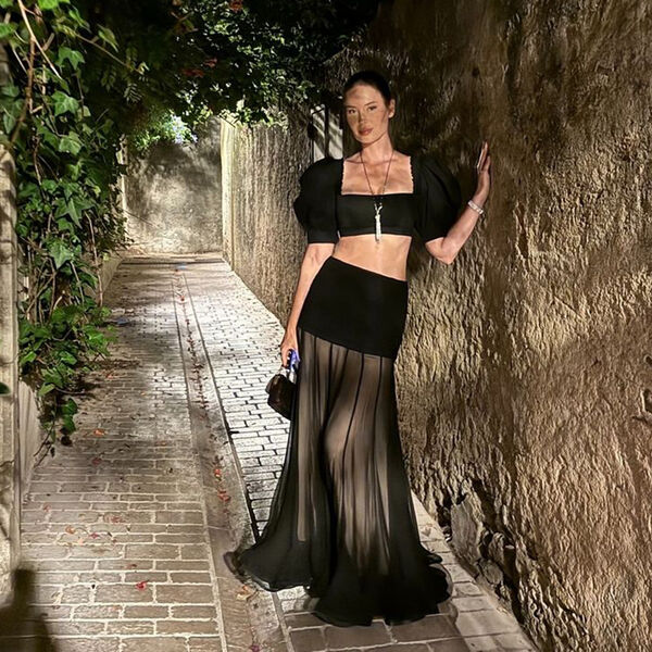Жена певца Эмина Агаларова снялась в полупрозрачном наряде на Сардинии. Модель Алена Гаврилова, владеющая салоном красоты в Москве, прошлась по улицам острова в костюме из макси-юбки и короткого топа, обнажившего пресс, и поделилась кадрами в соцсетях.