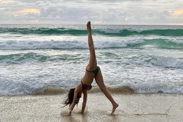 Исполнительница хита «Плохая девочка» Анна Плетнева показала растяжку в крошечном бикини. Солистка группы «Винтаж» позировала на берегу океана, стоя на руках, и поделилась кадром в личном блоге.