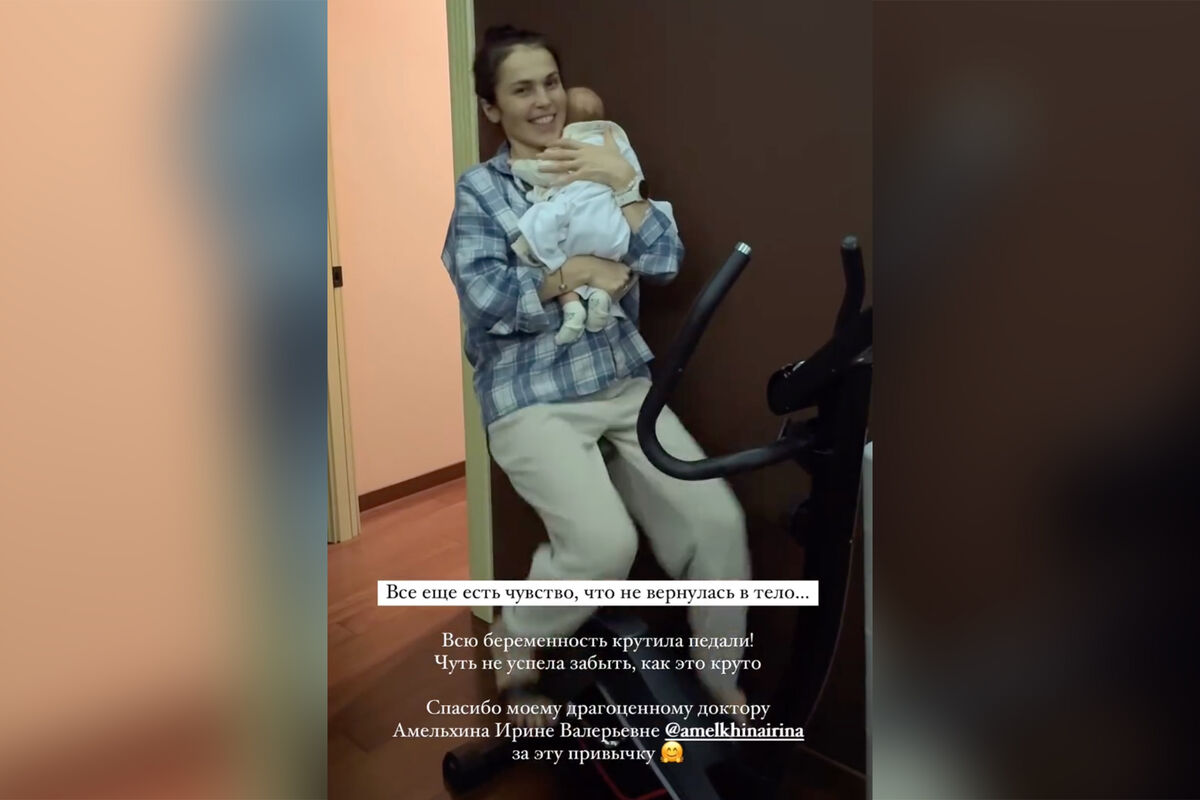 «Все еще есть чувство, что не вернулась в тело... Всю беременность крутила педали. Чуть не успела забыть, как это круто. Спасибо моему драгоценному доктору за эту привычку», — отметила исполнительница.